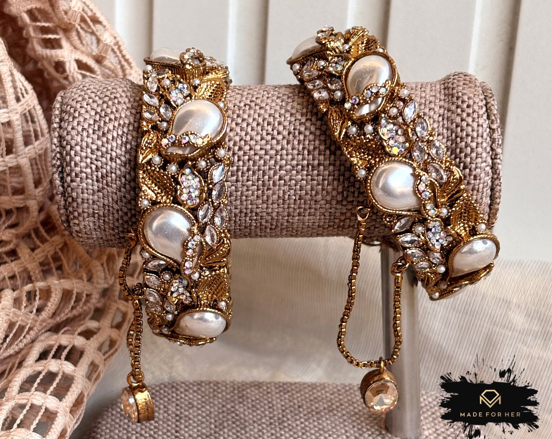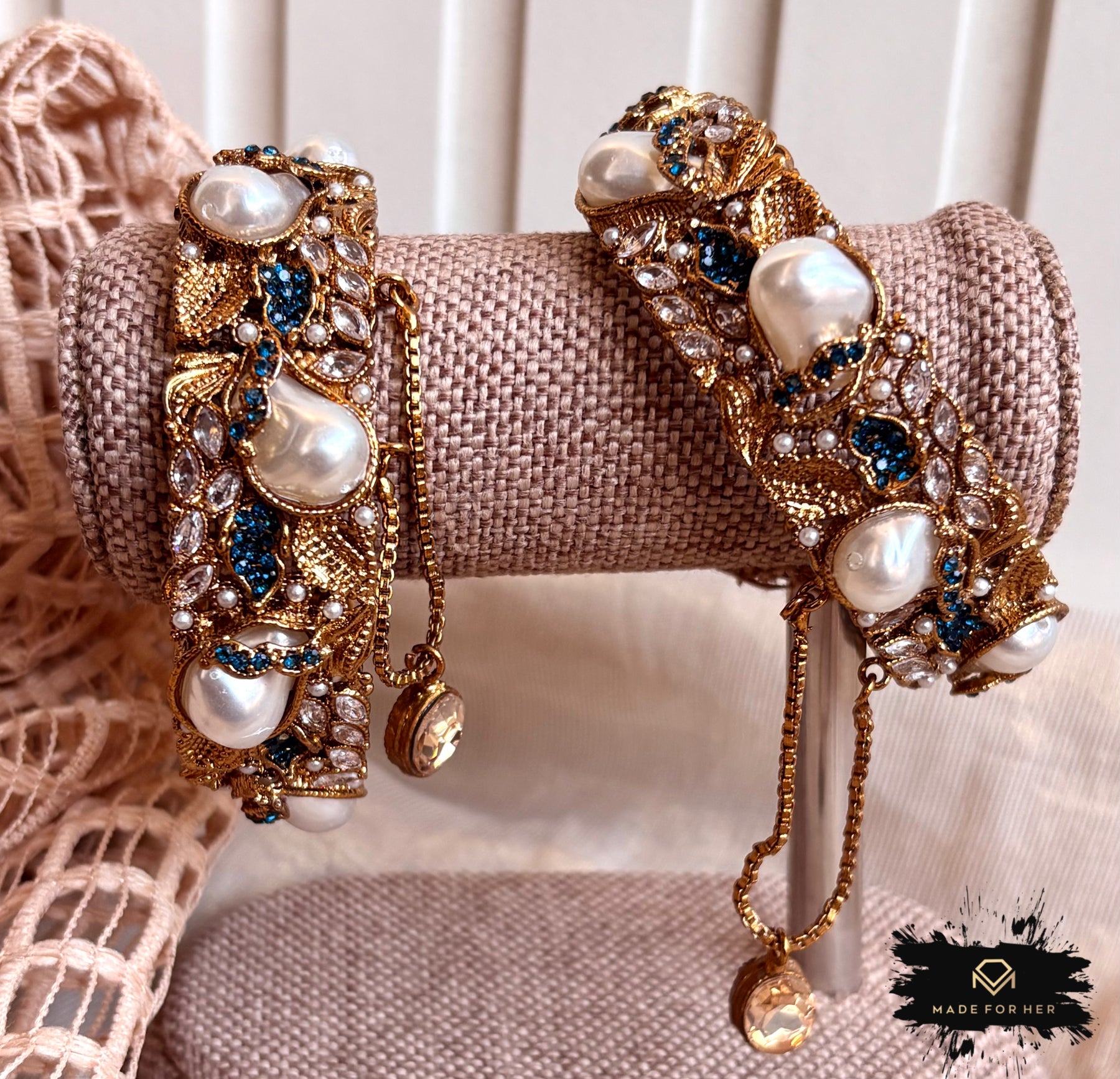 Add a touch of elegance to your wrist with these Pearly Clasp Openable Bangles. Designed for a perfect fit, they feature lustrous pearl accents and a secure openable clasp, combining style with convenience. Ideal for festive occasions, weddings, or daily wear, these bangles bring a subtle shimmer and timeless charm to any outfit.